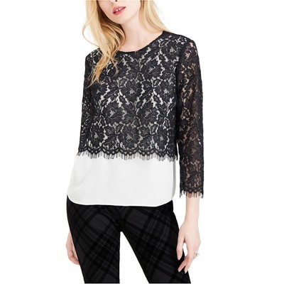 maison Jules Womens Lace-Overlay Pullover Blouse