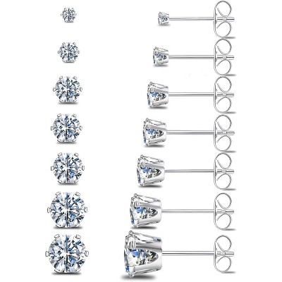 7 Pairs Hypoallergenic Stud Earrings Set: Silver, Gold & Black CZ in Titanium & Steel (2-8mm)