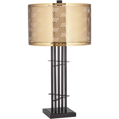 Possini Euro Design Deborah Modern Mid Century Table Lamp 30" Tall Black with USB Charging Port Gold Metal Double Drum Shades for Living Room Desk
