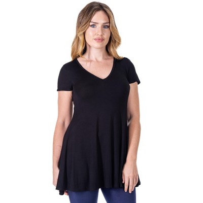 24seven Comfort Apparel Womens V Neck Criss Cross Neckline T Shirt Tunic Top