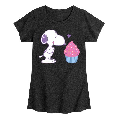 Girls' - Peanuts - Snoopy Heart Cupcake Fitted Short Sleeve Graphic T-Shirt