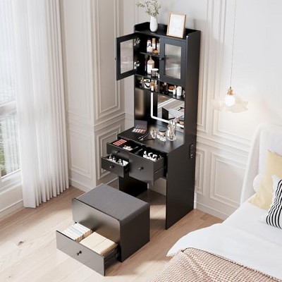 black vanity with zebra stool