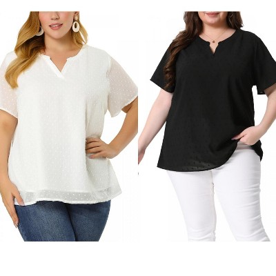 Women's Plus Size 2 Pieces Pin Dots V-Neck Dressy Trendy Fashion Summer Blouses - Agnes Orinda