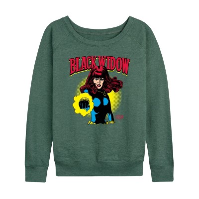 Women's - Marvel - Black Widow Type Lightweight French Terry Wide Neck Long Sleeve Graphic Shirt