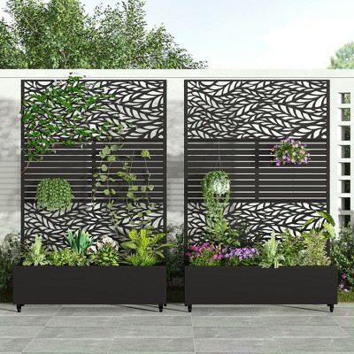 SpassWay 72"H Two-tone Patio Planter Box with Trellis Metal Raised Garden Bed Black Decorative Privacy Screen with Wheels