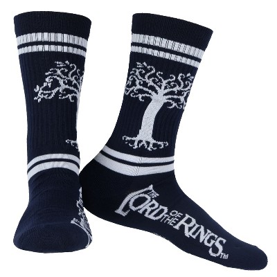 Lord of the Rings Socks White Tree Of Gondor Design Mid-Calf Adult Crew Socks Black