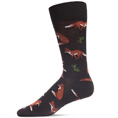 Memoi Men's Fantastic Foxes Bamboo Blend Novelty Crew Sock Black 10-13