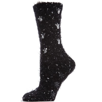 Memoi Women's Floral Rhinestone Gems Plush Crew Socks