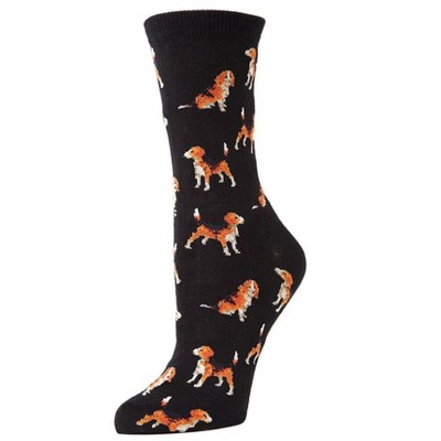 Memoi Women's 3 Pair Pack Beagle Bamboo Blend Crew Socks Black 9-11