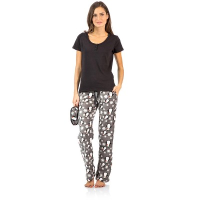 Ashford & Brooks Women's Cotton Top Eye mask & Coral Fleece Pants Pajama Set - Black Charcoal - Large
