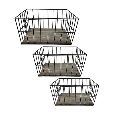 Medium Vintage Grey Wire French Blue Liner Basket Set/2