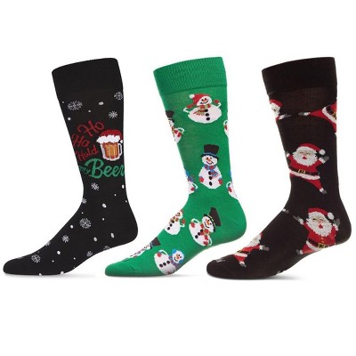 MeMoi Men's 3 Pair Pack Christmas Novelty Crew Socks