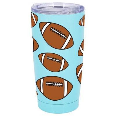 100 North 20 Ounce Stainless Steel On the Go Travel Tumbler With Push Top Lid, Football Teal