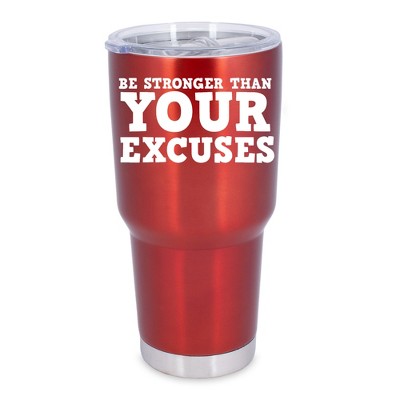 100 North 30 Ounce Stainless Steel On the Go Travel Tumbler With Push Top Lid, Be Stronger Than Your Excuses Red