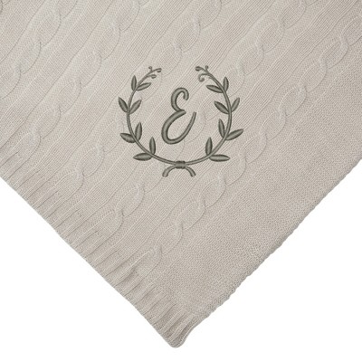 Personalization Mall Floral Wreath Initial Cable KnitThrow Blanket, Tan, 50"x60"