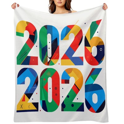 Soscooter 2026 Happy New Year Flannel Throw Blanket Colorful Geometric Number Pattern Modern Festive Cozy Blanket 60x80 inches