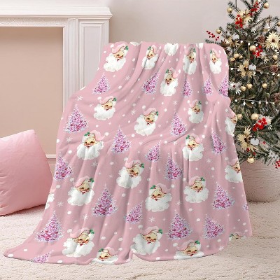 Lomsoe Soft Pink Christmas Blanket, Cute Santa Claus Snowflake Holiday Blankets, Cozy Pink Christmas Blankets Throw for Couch Bed.