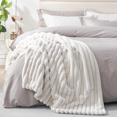 Amelie Home Soft Faux Fur Throw Blanket, Faux Rabbit Fur Striped Throw Blanket