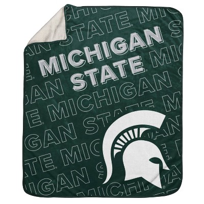 NCAA Michigan State Spartans Wordmark 60 x 70 Faux Shearling Blanket: Team Logo Plush