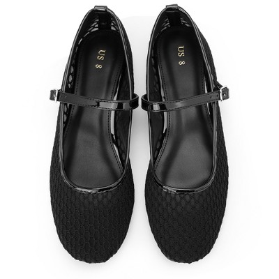 BLISSFUL STEP Round Toe Buckle Strap Breathable Mesh Ballet Flats Pumps for Women