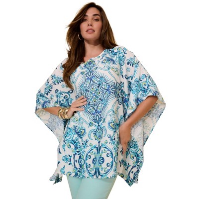 Roaman's Plus Size Angelina Crinkle Crepe Y-Neck Short Sleeve Tunic