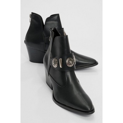 Kenda Black Buckle Block Heel Boot (Women) | Prologue Shoes