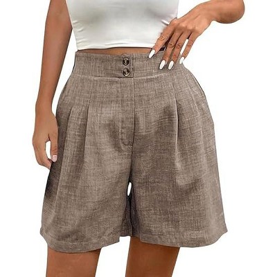 Coolmee Women's Shorts Casual Summer Elastic High Waist Button Tailored Shorts Pleated Beach Vacation Outfits