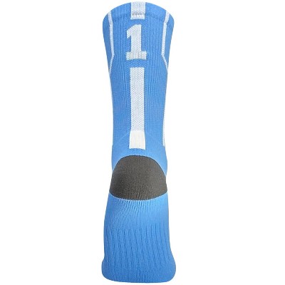 Mk Socks Player ID Jersey Number SINGLE Crew Sock - Columbia Blue, White