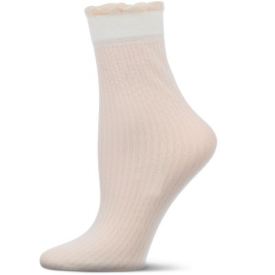 Memoi Women's Sheer Ruffle Cuff Ribbed Crew Socks