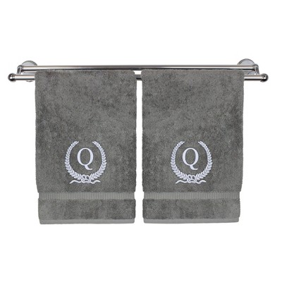 BC BARE COTTON Monogrammed Hand Towel, 100% Turkish Cotton - Set of 2 - Gray - Silver Wreath