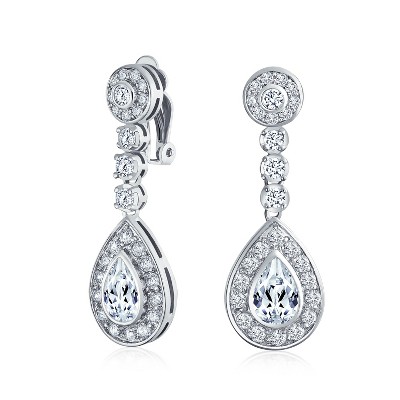 Bling Jewelry Art Deco Style Cubic Zirconia CZ Statement Teardrop Chandelier Clip On Dangle Earrings
