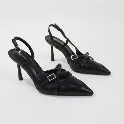 Berness Women's Coraline Patent Slingback Pump Heels with Buckle Detail