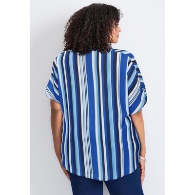 Catherines Anywear Pucker Cotton V-Neck Placket Blouse