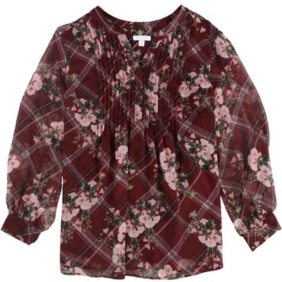 ellos Floral Notch-Neck Blouse