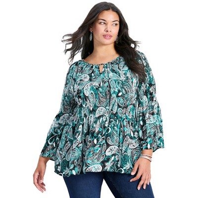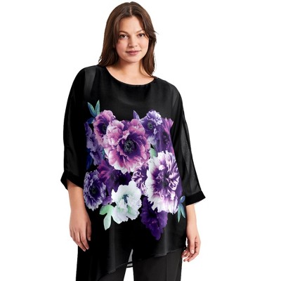 Women's Plus Size Long Bell Sleeve High Low Hem Crew Neck Casual Flared Tunic Blouse - Agnes Orinda 2X Black