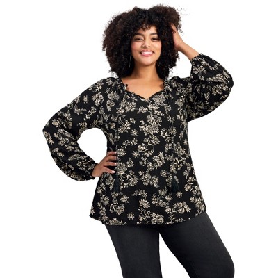 ELOQUII V-Neck Blouse With Chiffon Trim