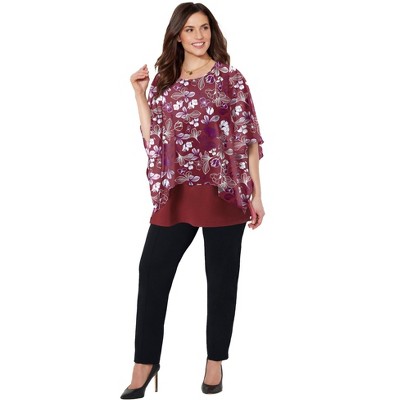 NY Collection Womens Cinch Front Floral Pullover Blouse