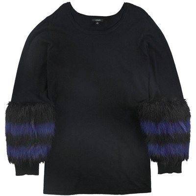 Alfani Womens Faux Fur Trim Pullover Blouse, black, 2X