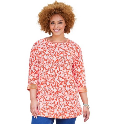 Women's Plus Size Floral Printed Round Neck Short Sleeve Casual Country Peasant Tops - Agnes Orinda