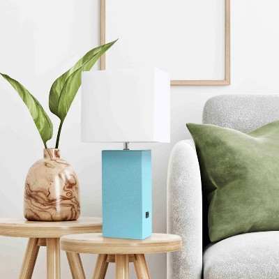 25.5" Ceramic Vienna Table Lamp (Includes LED Light Bulb) Blue - JONATHAN Y: Modern Linen Shade, UL Listed, Metal Base