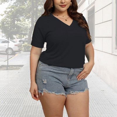 Womens Plus Size Summer Tops V Neck Plus Size T-Shirts Plus Size Short Sleeve Basic Tops