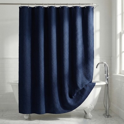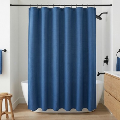 - blue bathroom curtain