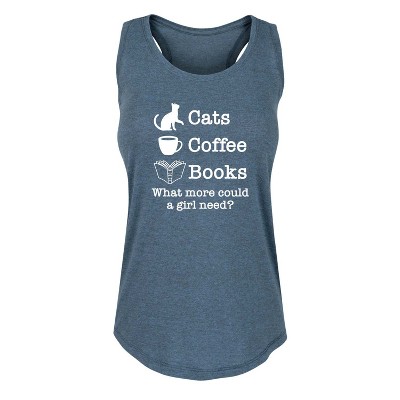Women's - Instant Message - Cats Coffee Books Graphic Racerback Tank