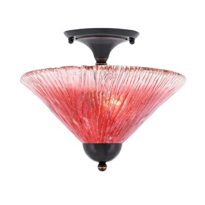 Toltec Lighting Any 2 - Light Flush Mount in Black Copper with 12" Raspberry Crystal Shade