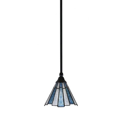 Toltec Lighting Any 1 - Light Pendant in Matte Black with 7" Sea Ice Art Glass Shade