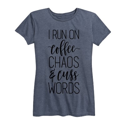 Women's - Instant Message - I Run On Coffee Chaos And Cuss Words Short Sleeve Graphic T-Shirt