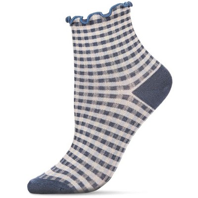 Memoi Women's Gingham Cotton Blend Ruffle Cuff Anklet Socks
