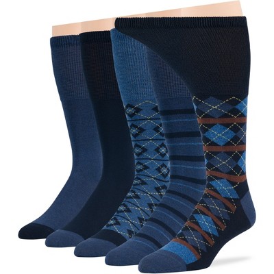 Men Cotton Patterned Dress Sock - 6 Pack - Argyle, Stripe, Dot - Shoe Size 9-12 L - Black, Brown, Navy, Blue | 7BIGSTARS KINGDOM