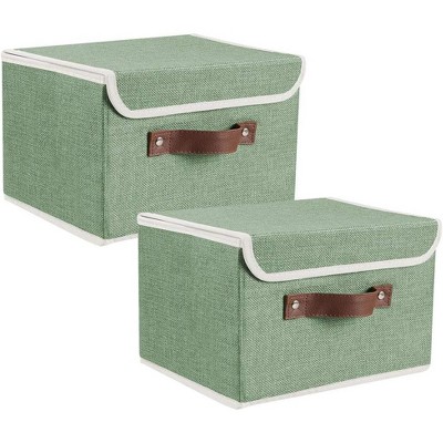 Aoibox Collapsible Fabric Storage Bins Boxes with Lids Green Set of 2 Decorative Closet Home Office Organizer 15x10x10