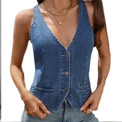 blue denim vests